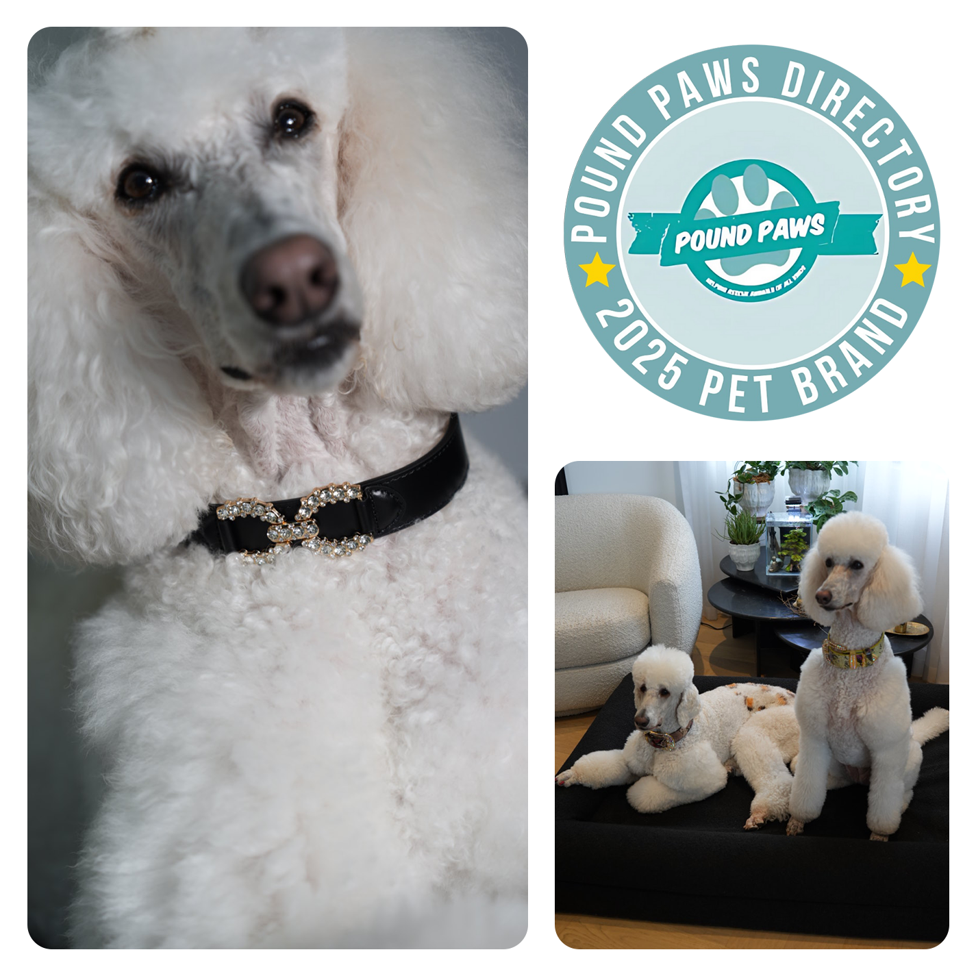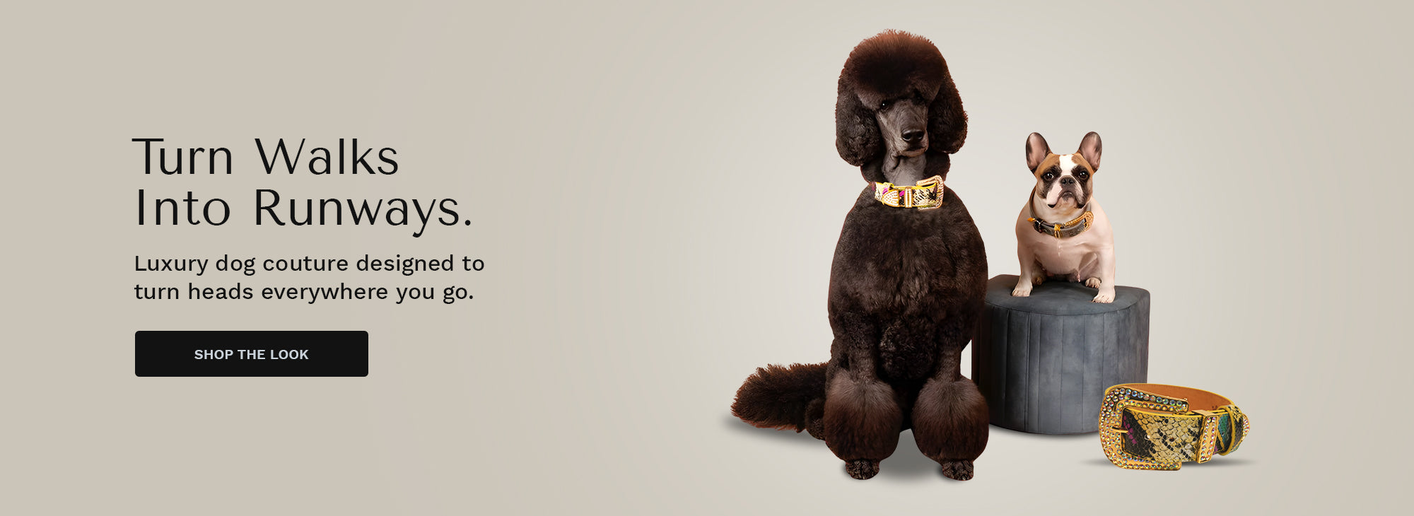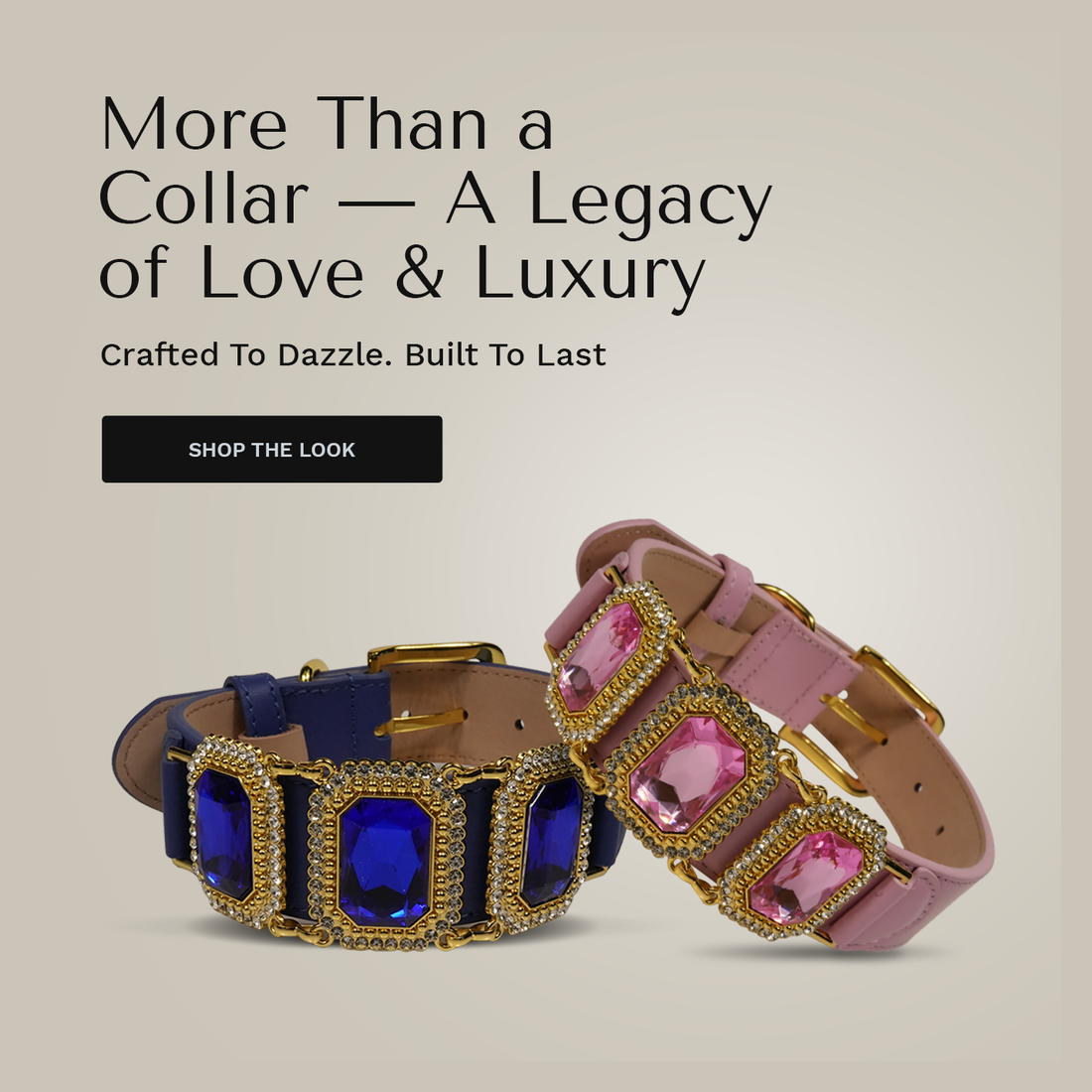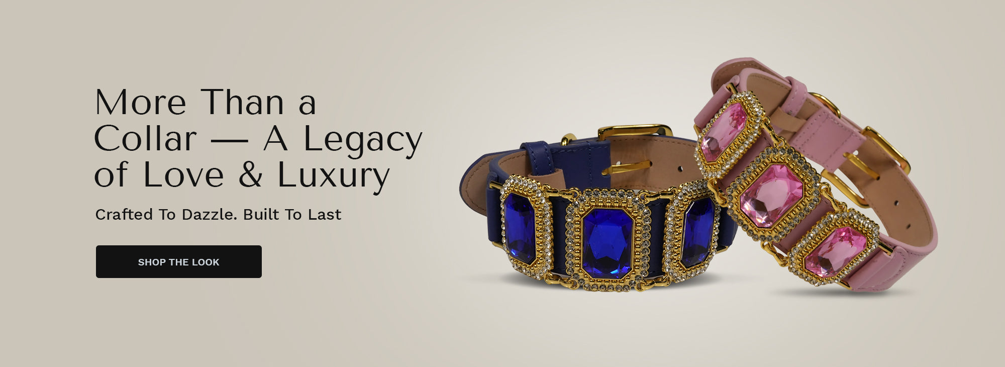 What began as a passion became a promise. To design accessories that are unapologetically glamorous, beautifully crafted, and worthy of the dogs who mean everything to us. Every piece is made to celebrate the bond between people and their pets. Our collars are couture statements — handcrafted from the finest leather, set with crystals, and designed to shine with elegance and emotion.