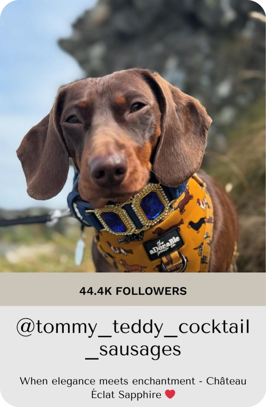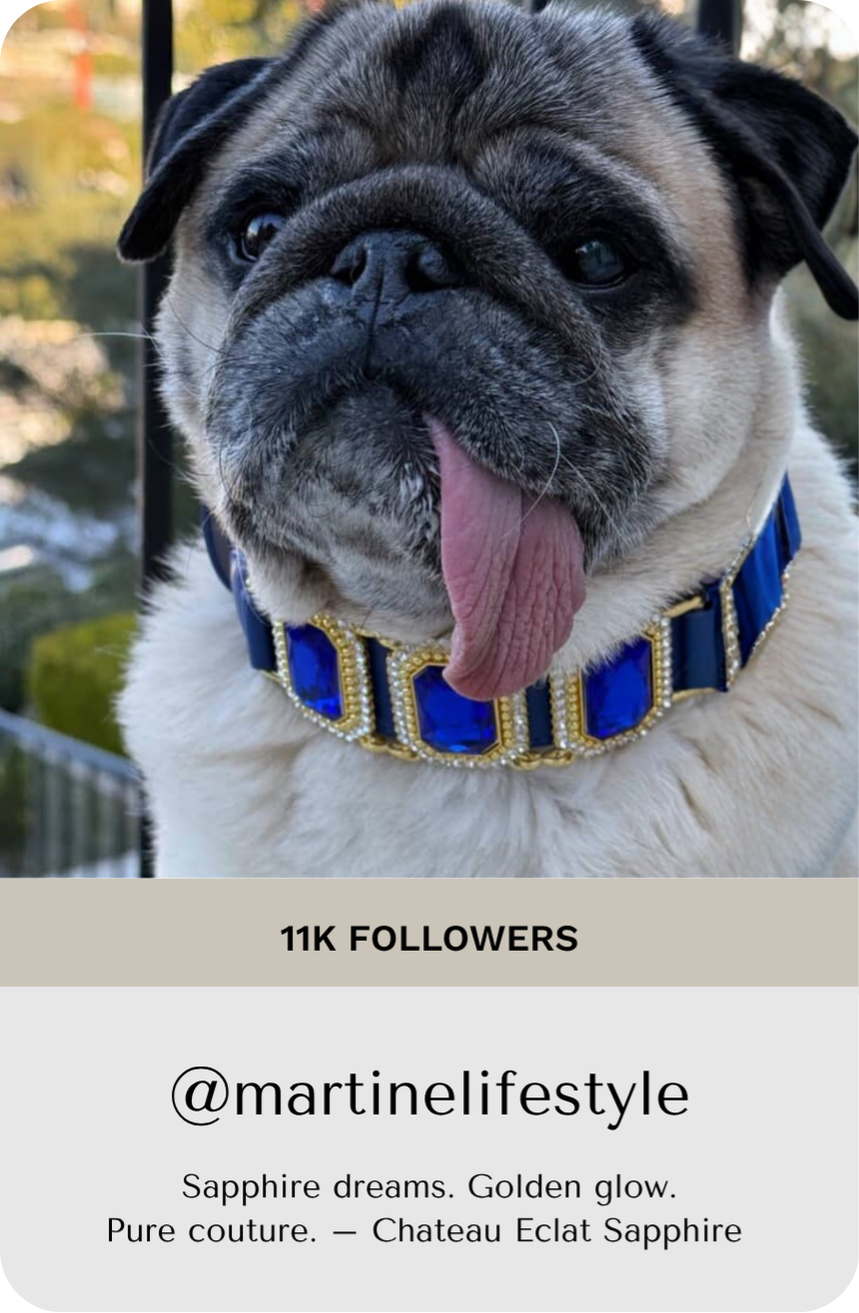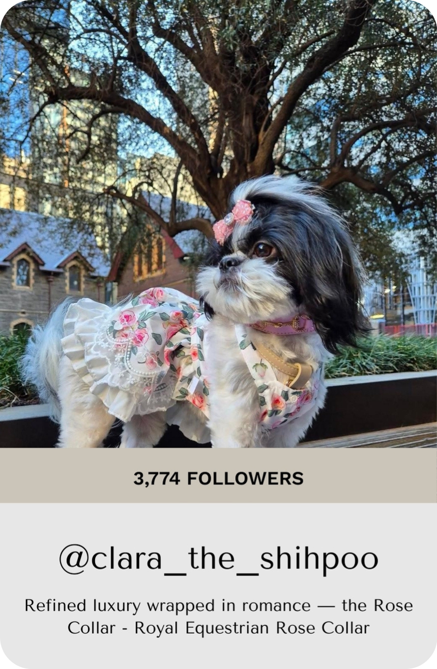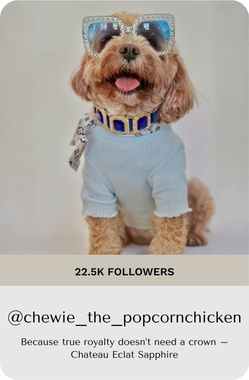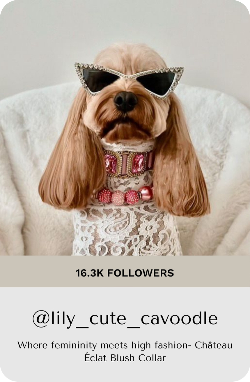What began as a passion became a promise. To design accessories that are unapologetically glamorous, beautifully crafted, and worthy of the dogs who mean everything to us. Every piece is made to celebrate the bond between people and their pets. Our collars are couture statements — handcrafted from the finest leather, set with crystals, and designed to shine with elegance and emotion.