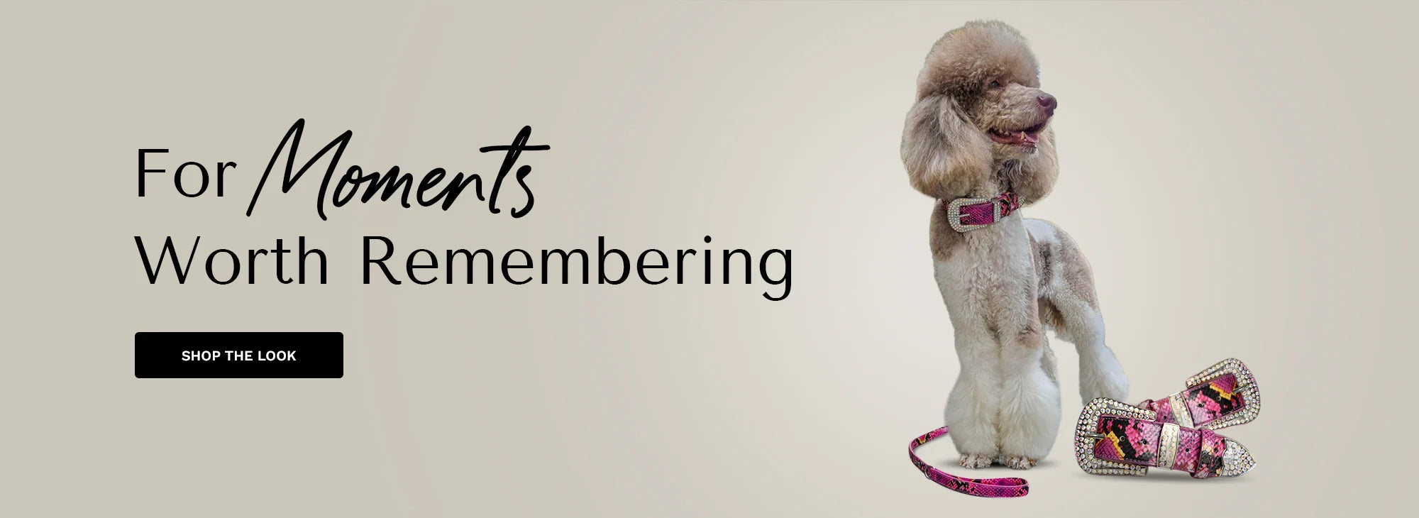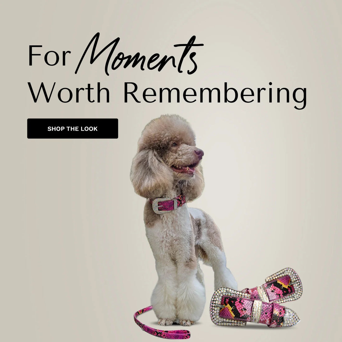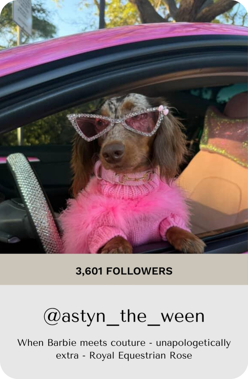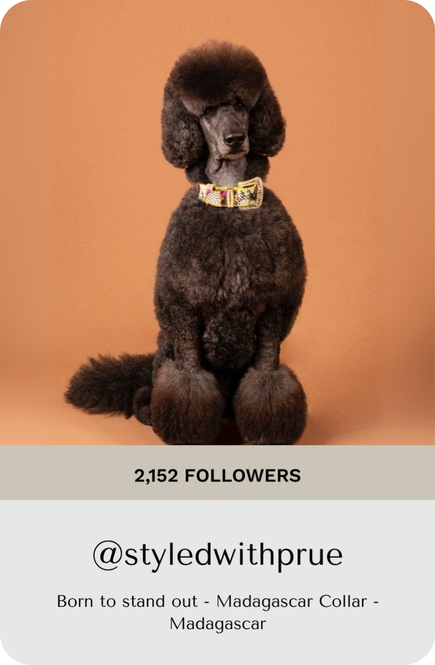 What began as a passion became a promise. To design accessories that are unapologetically glamorous, beautifully crafted, and worthy of the dogs who mean everything to us. Every piece is made to celebrate the bond between people and their pets. Our collars are couture statements — handcrafted from the finest leather, set with crystals, and designed to shine with elegance and emotion.