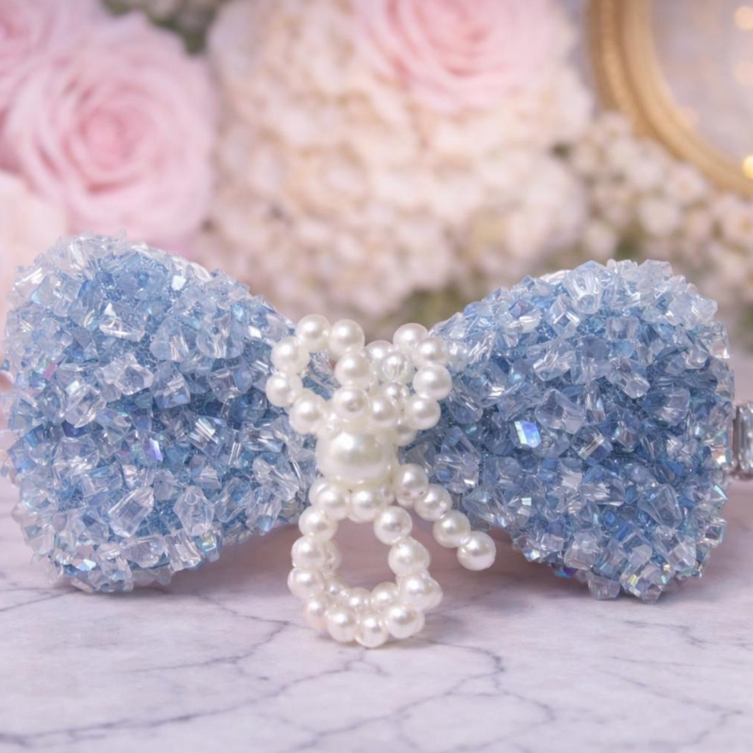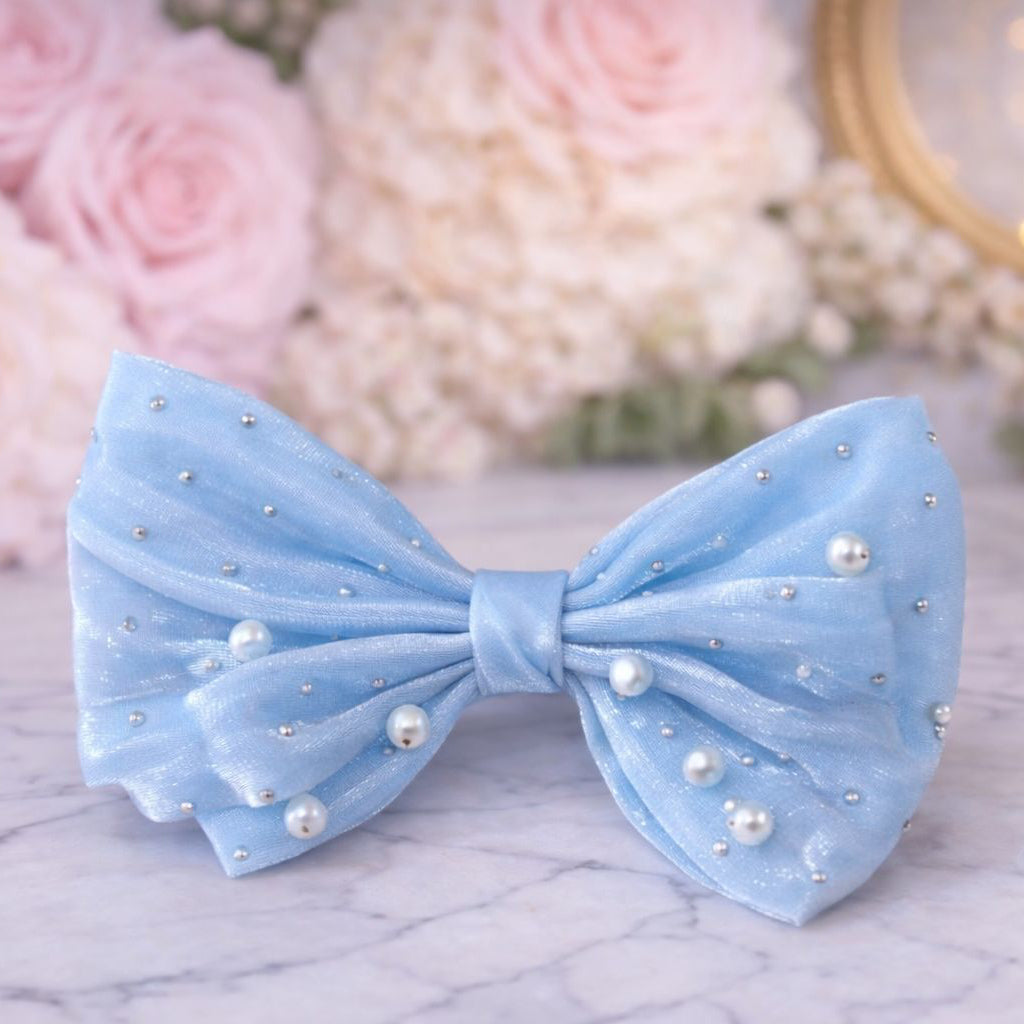 Luxe Pearl Bow – Bleu Céleste