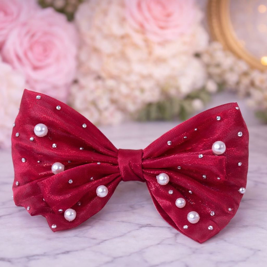 Luxe Pearl Bow – Crimson