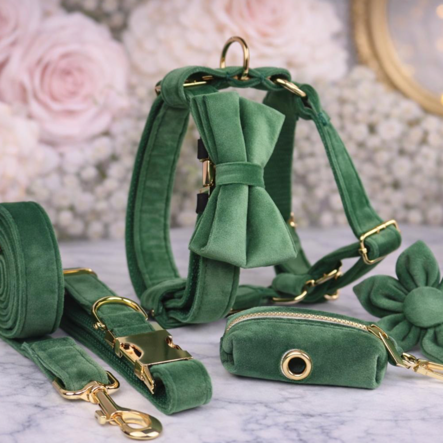 — Coordinating velvet leash for a seamless, elevated look