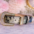 💎 Polished gold-tone buckle with rhinestone detailing
