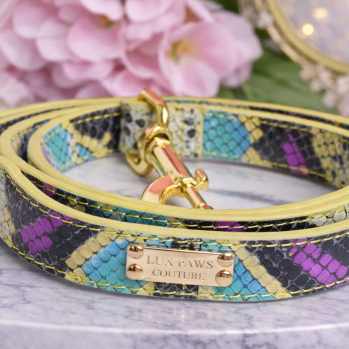 — Premium full-grain leather in a bold multi-toned snakeskin finish