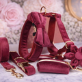 Step into timeless elegance with our Amour Velvet Set — a statement collection designed for pups who embody sophistication. Crafted in rich, deep sapphire velvet and finished with polished gold hardware, this couture set ensures every walk feels like a runway moment.